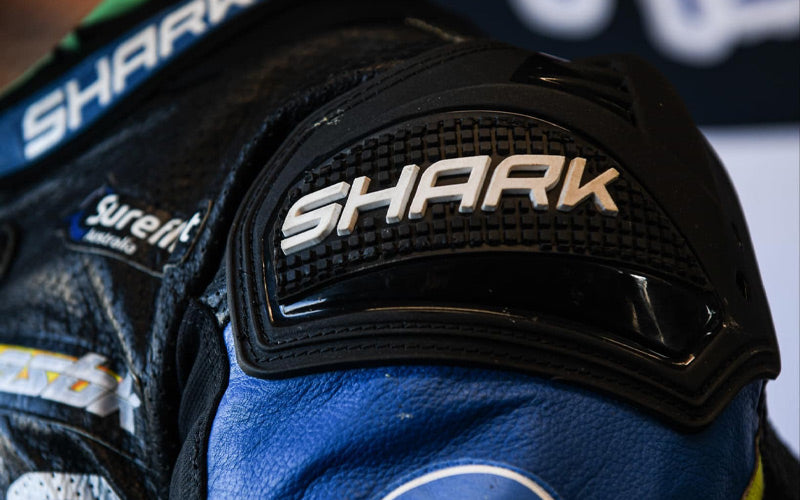 Shark external moulded sliders on the shoulders and knees, with replaceable elbow sliders for ongoing performance.